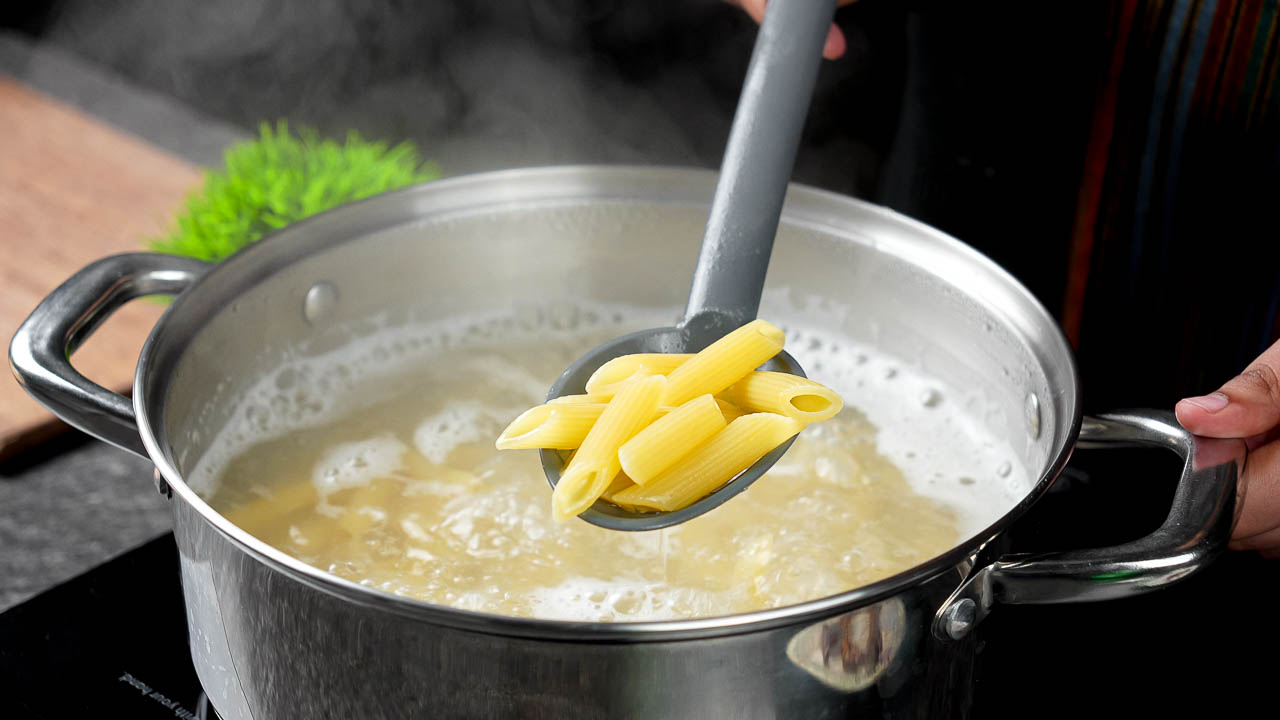 Bring a large pot of salted water to a boil. Add the penne pasta and cook until just al dente according to package instructions. Drain well and set aside.