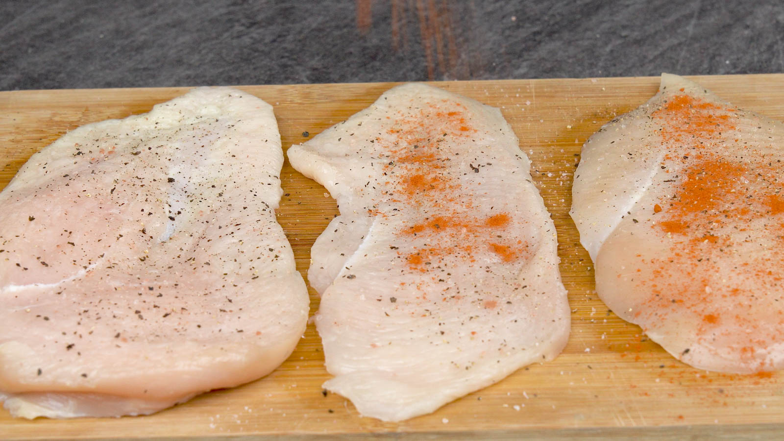 - Pat the chicken breast dry, ready for seasoning.