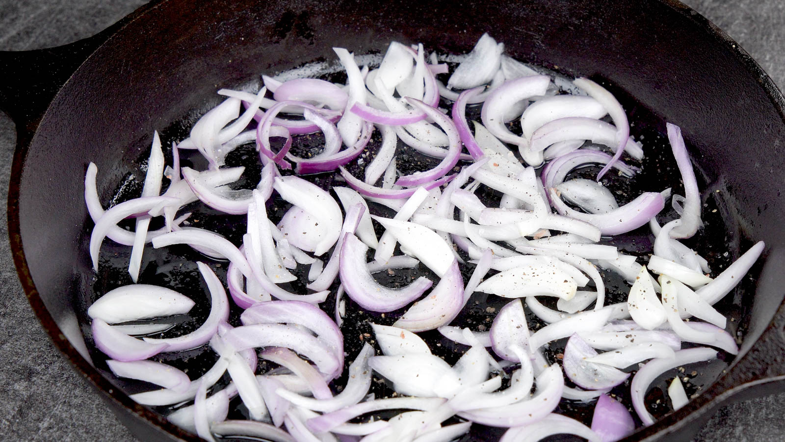 - Thinly slice the onion.