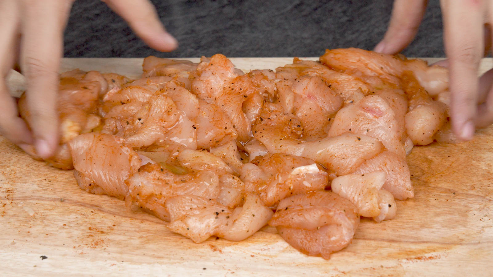 Slice chicken into long strips