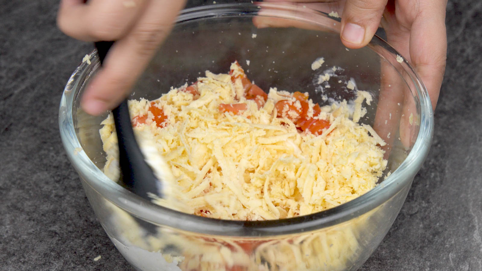Chop tomatoes and grate cheese in it.