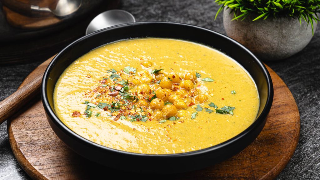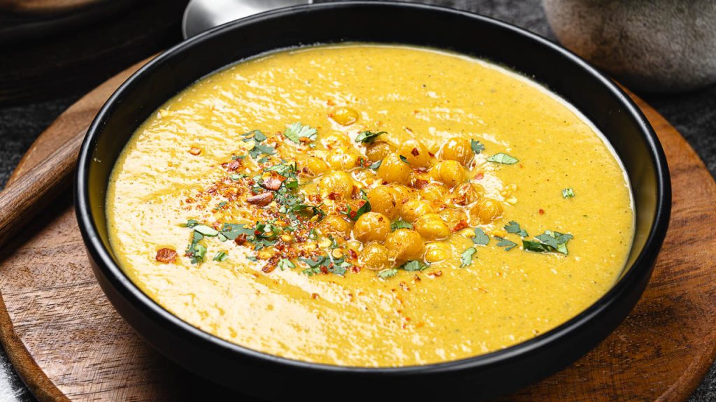 It masterfully balances nutrient-dense vegetables like broccoli and carrots with protein-packed chickpeas, all simmered in aromatic spices and blended into a luxuriously smooth texture. Finally, with a touch of cream, the soup becomes velvety and rich, making every bowl feel indulgent yet light.