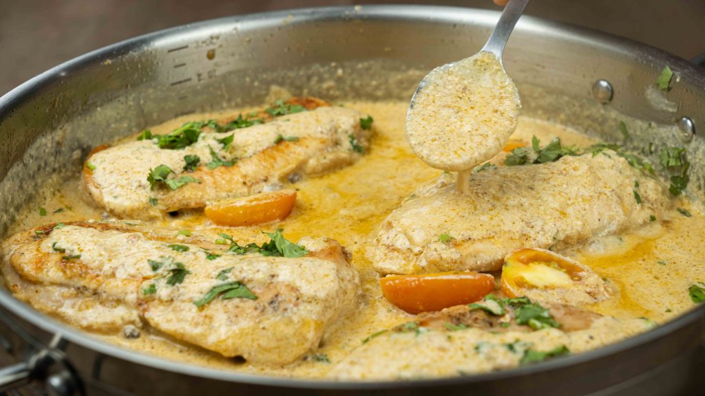 Crispy Chicken in Creamy Garlic Parmesan Sauce is easy to make, but we recommend reading the recipeโs instructions thoroughly before starting. It is better to have all ingredients measured out for every step in advance for ease.