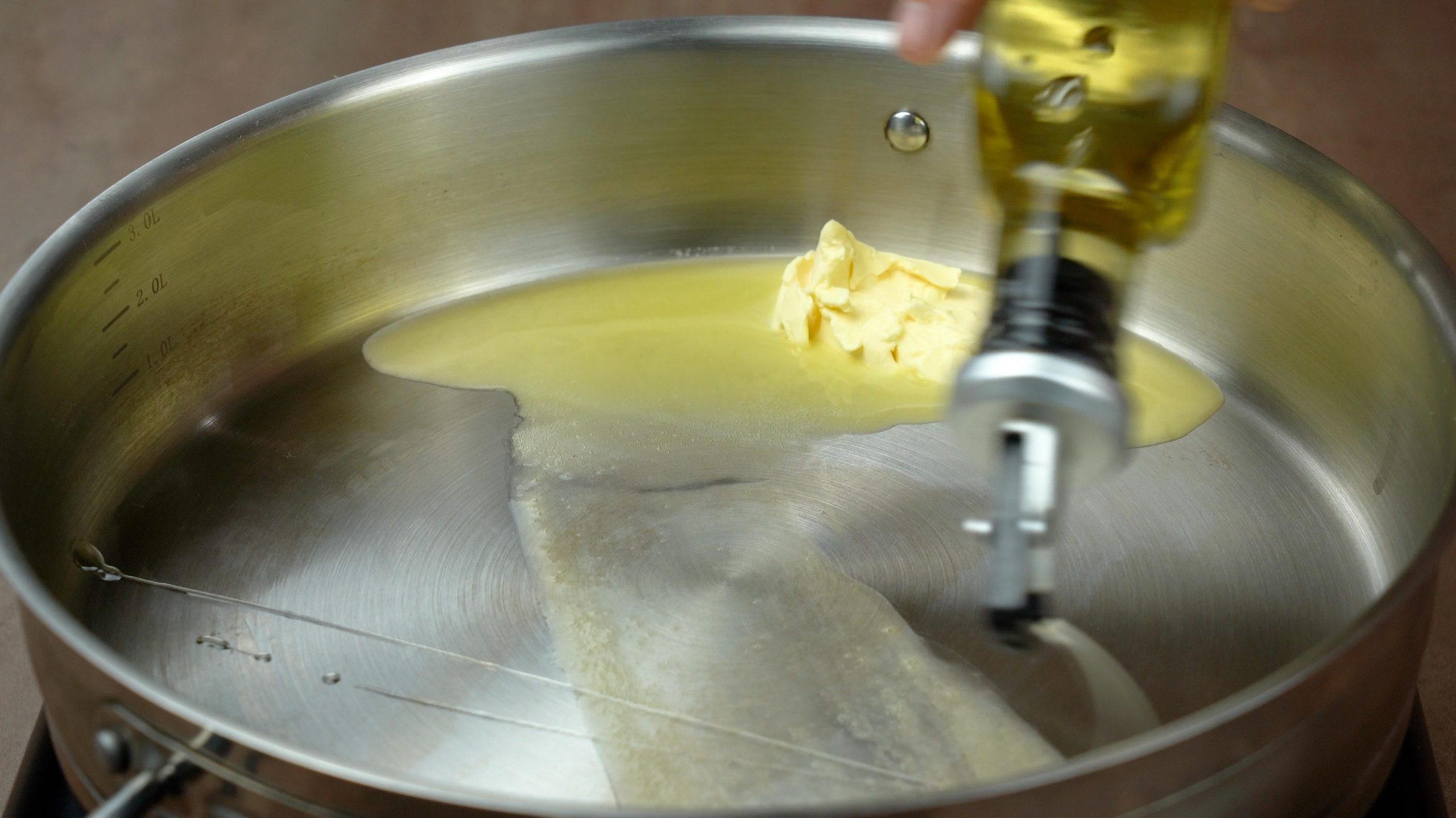 In a skillet, heat butter and olive oil over medium heat.