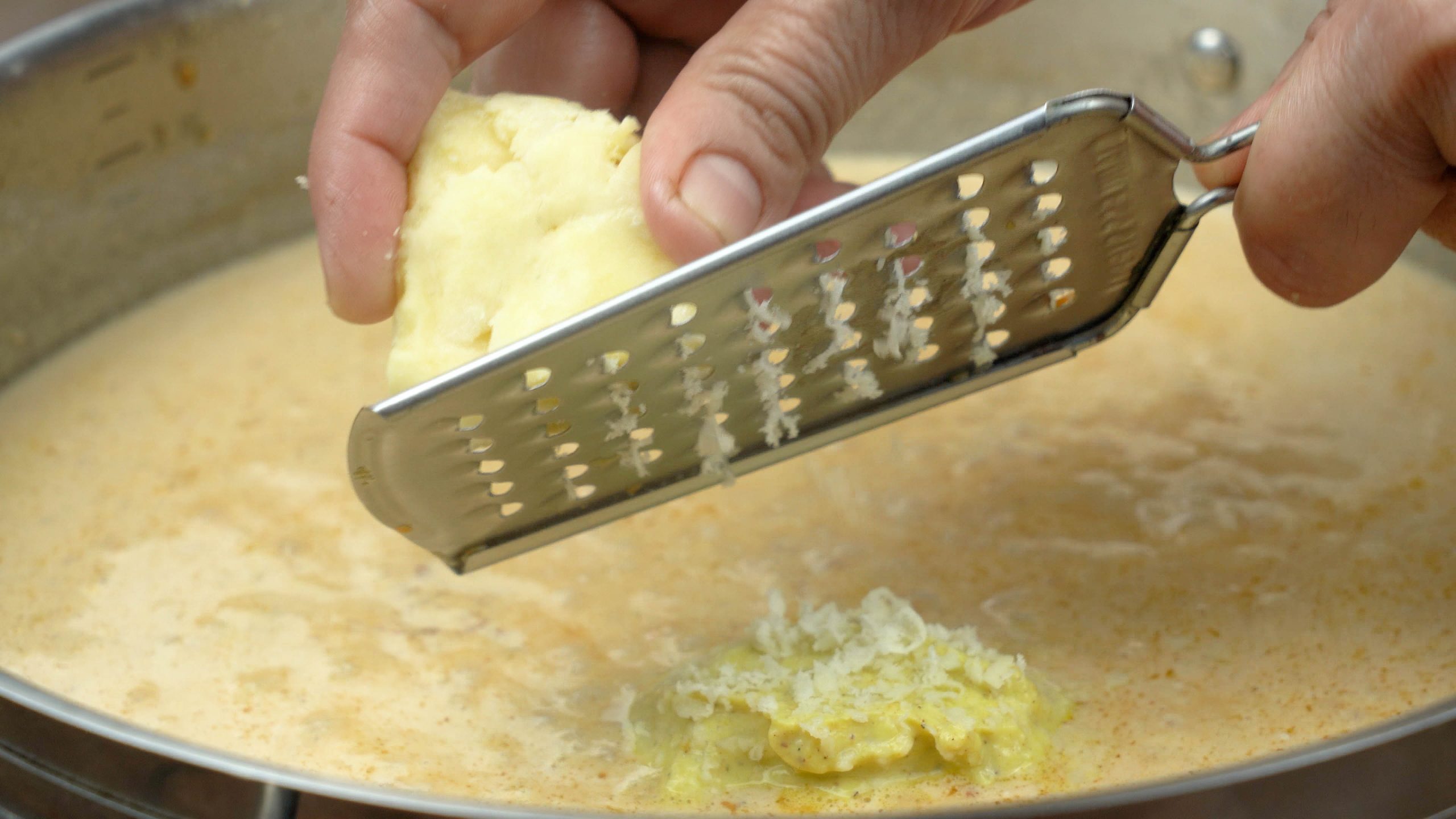 Add grated Parmesan cheese and stir until the sauce becomes creamy.