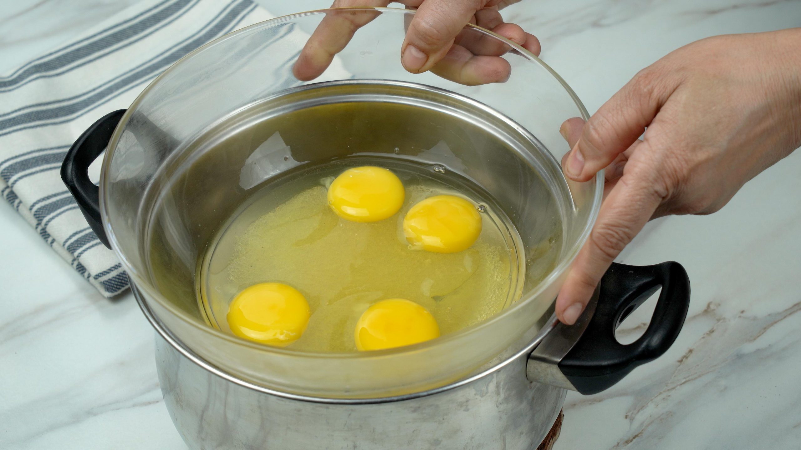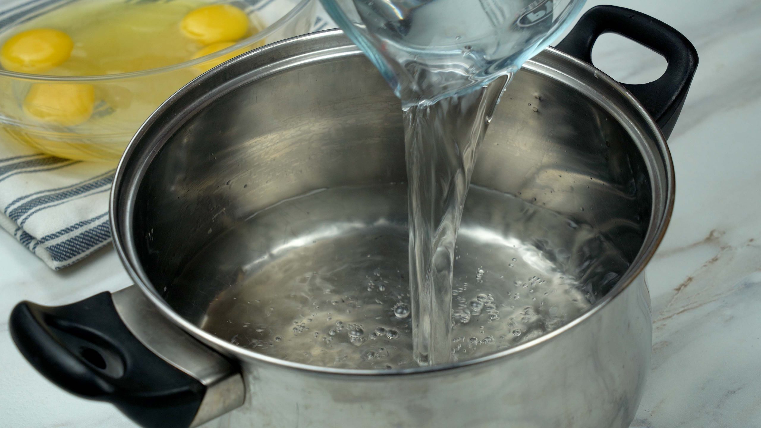 In a sauce pan, heat the water to set up a double boiler to whip the eggs.