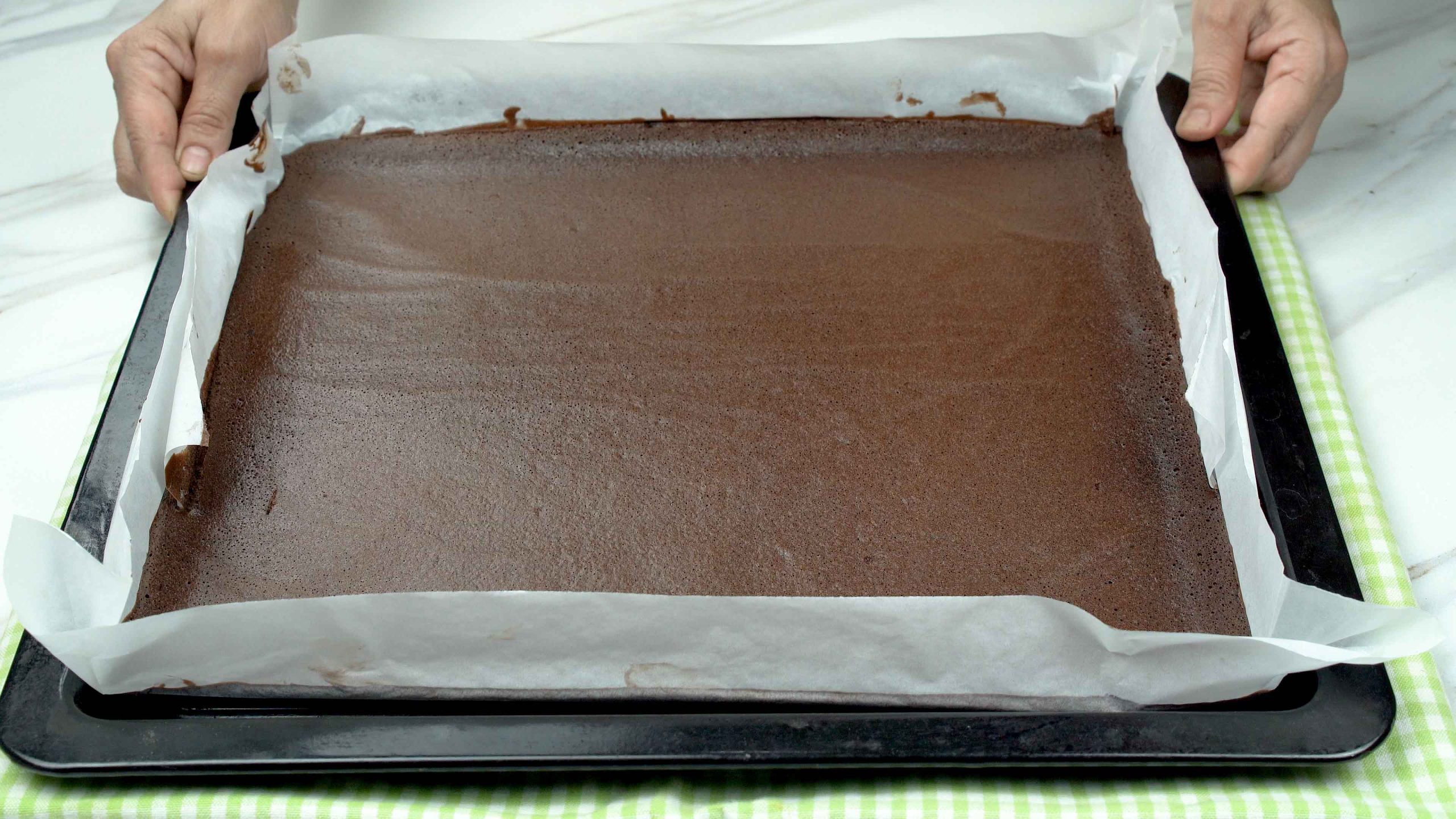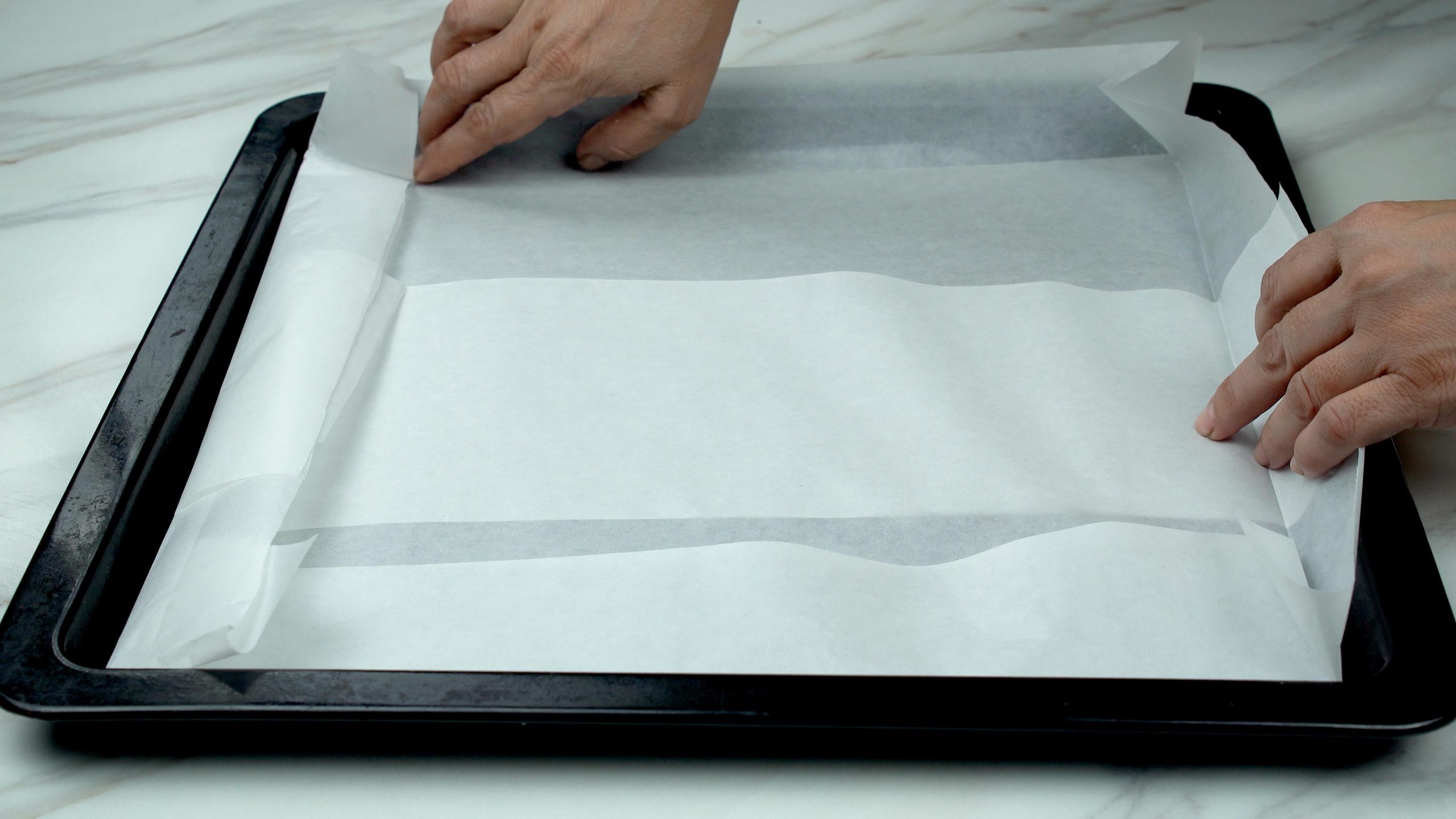 Preheat your oven to 180°C (350°F). Line a 40 x 30 cm (16 x 12 inch) baking tray with parchment paper. Lightly grease the paper so the sponge peels away easily.