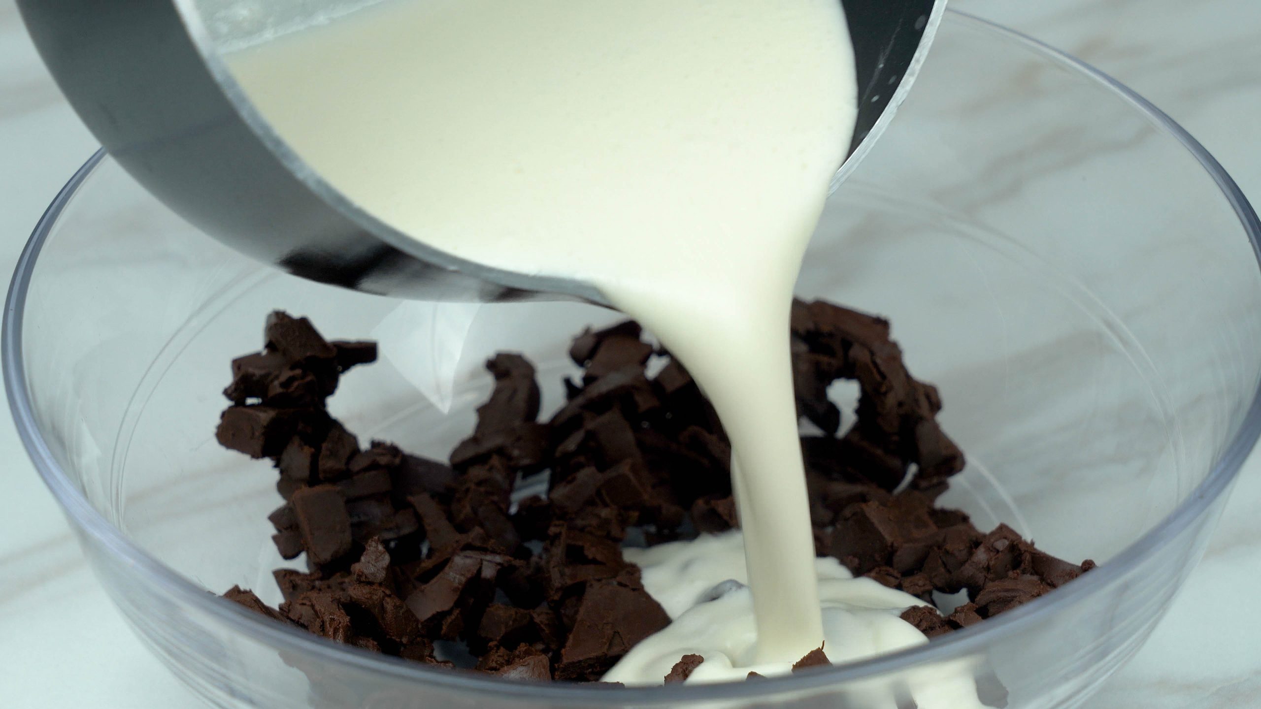 Heat the heavy cream until steaming (do not boil) and pour it over chopped dark chocolate.