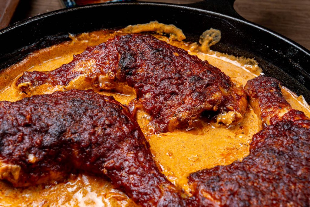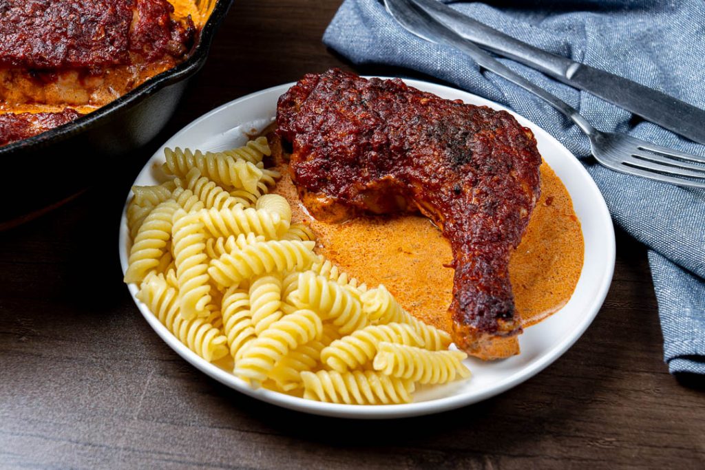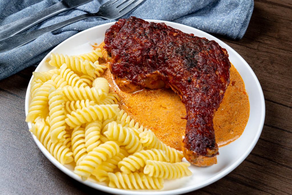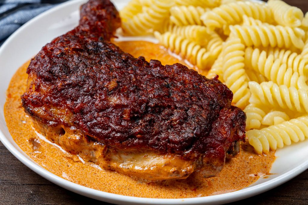 We were inspired to develop this recipe in order to deliver the genuine flavour of a Hungarian kitchen to your home without requiring any difficult steps. The chicken legs’ flawless sear and the base of onions and a mixture of hot and sweet paprika, which produce a rich, smooth, and completely irresistible sauce, are what work their magic. Perfectly clinging to each piece of chicken and the bed of buttery pasta underneath, this creamy sauce is finished with a hint of sour cream.