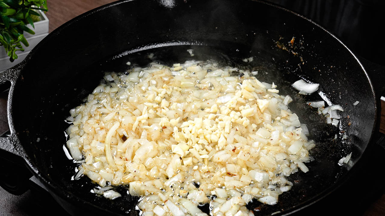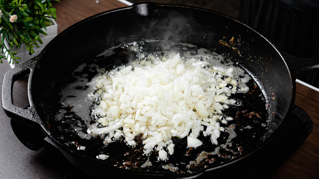 In the same pan, add chopped onions and cook until soft and golden brown, about 6–8 minutes.