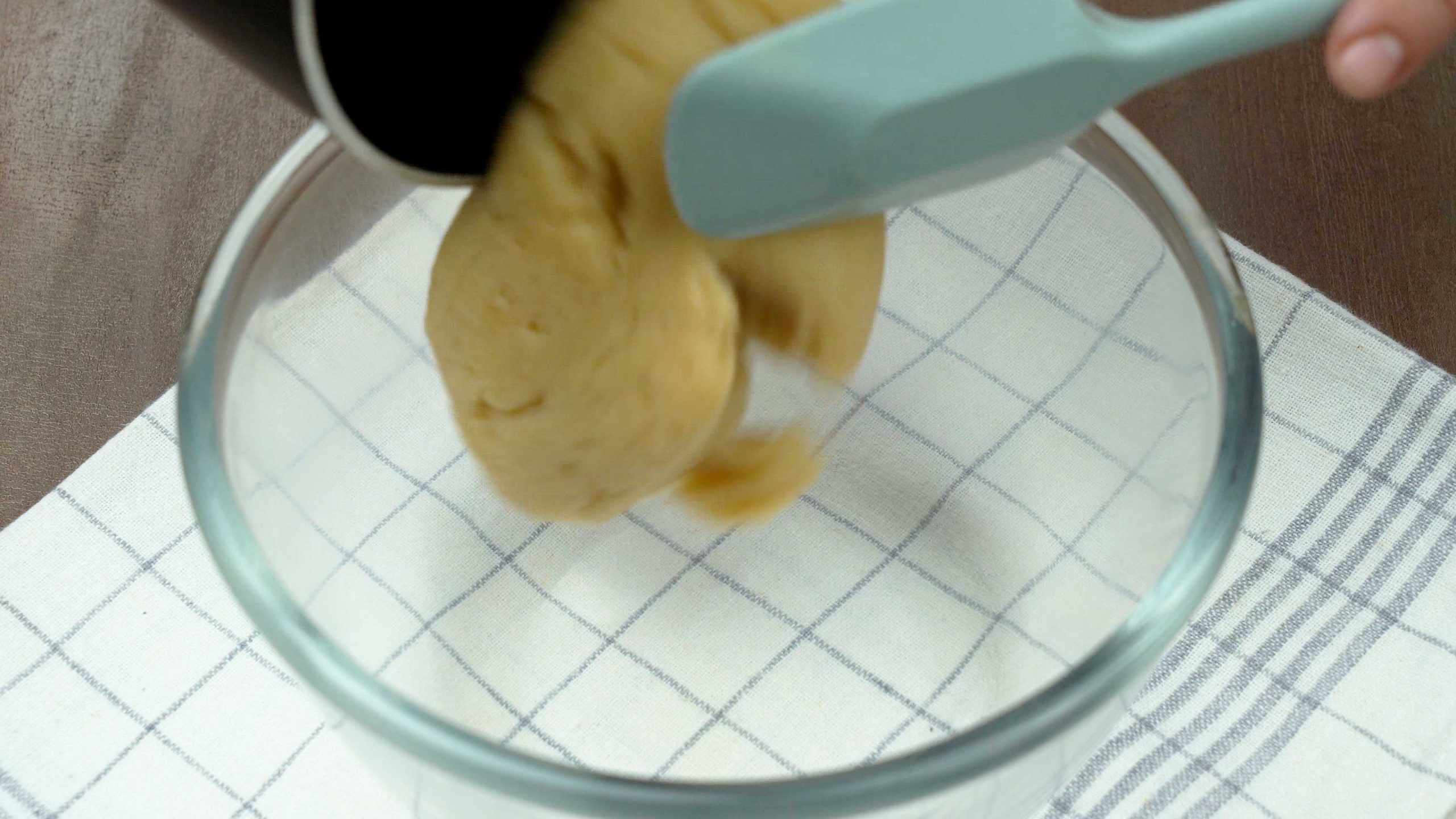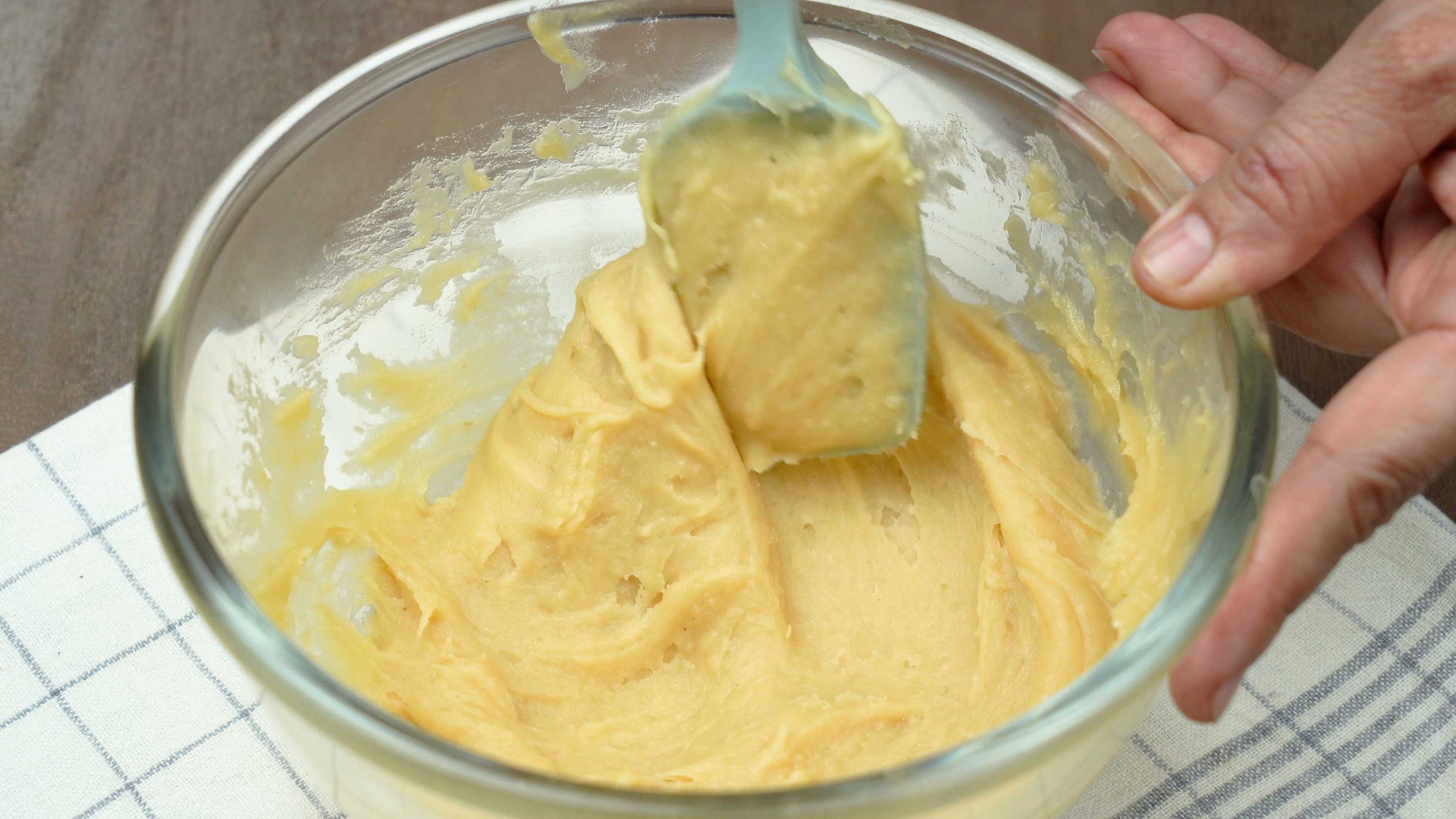 Let it cool slightly (5–10 minutes), then beat in eggs one at a time until the batter is glossy and smooth.