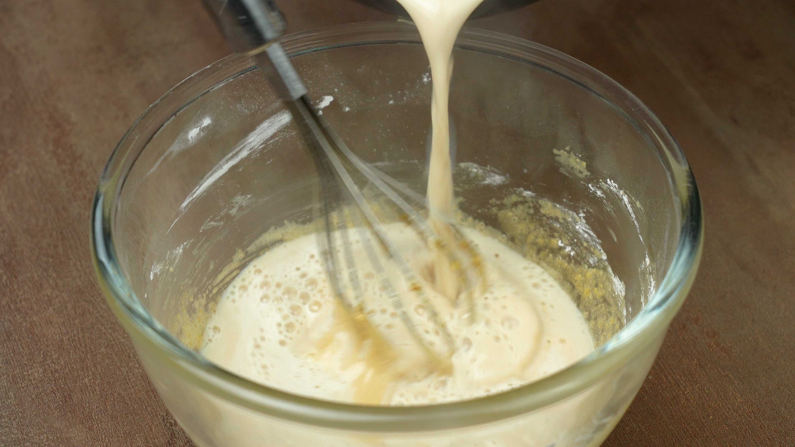 Temper the yolks by slowly pouring the hot milk into the yolk mixture while whisking constantly.