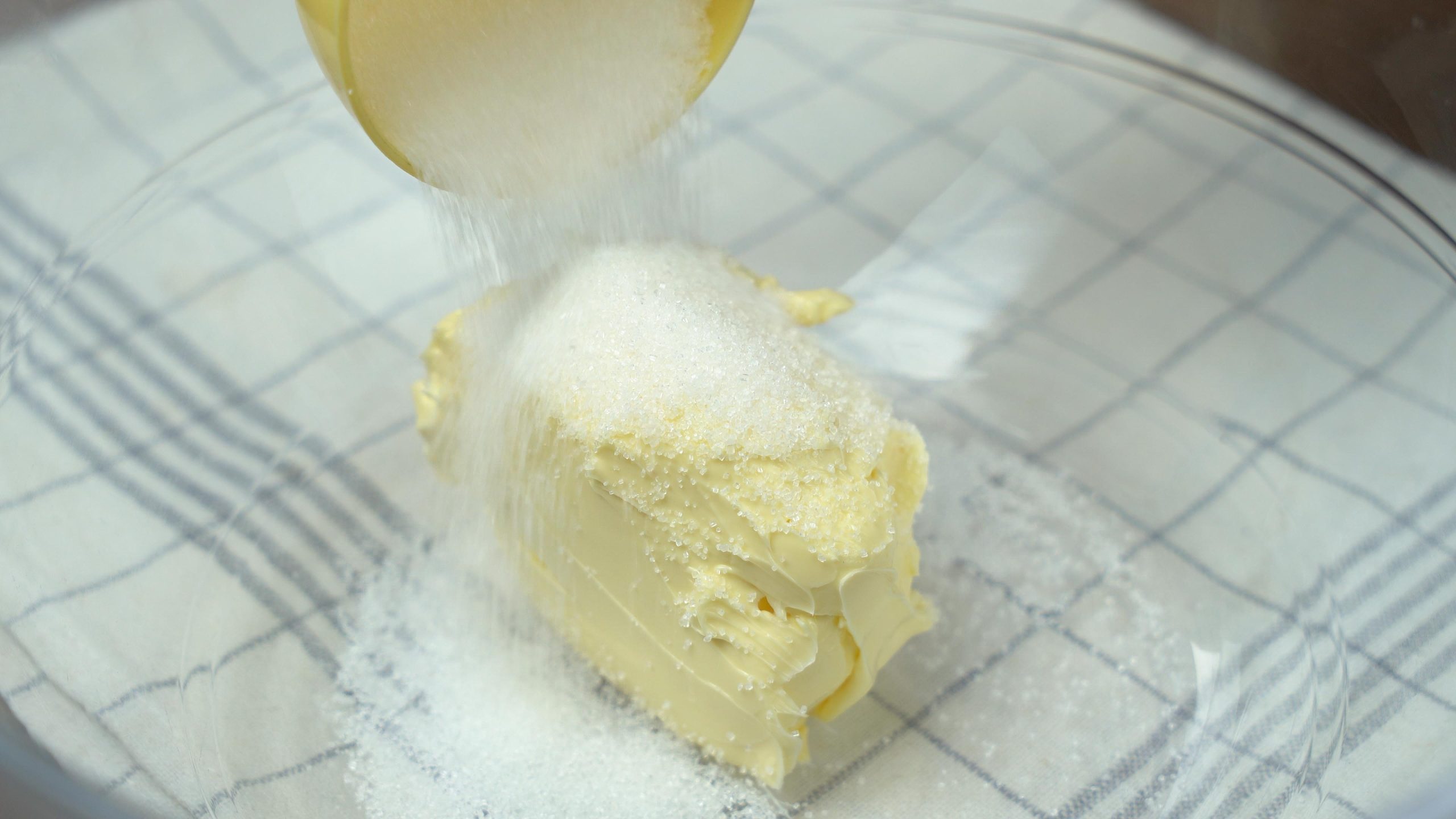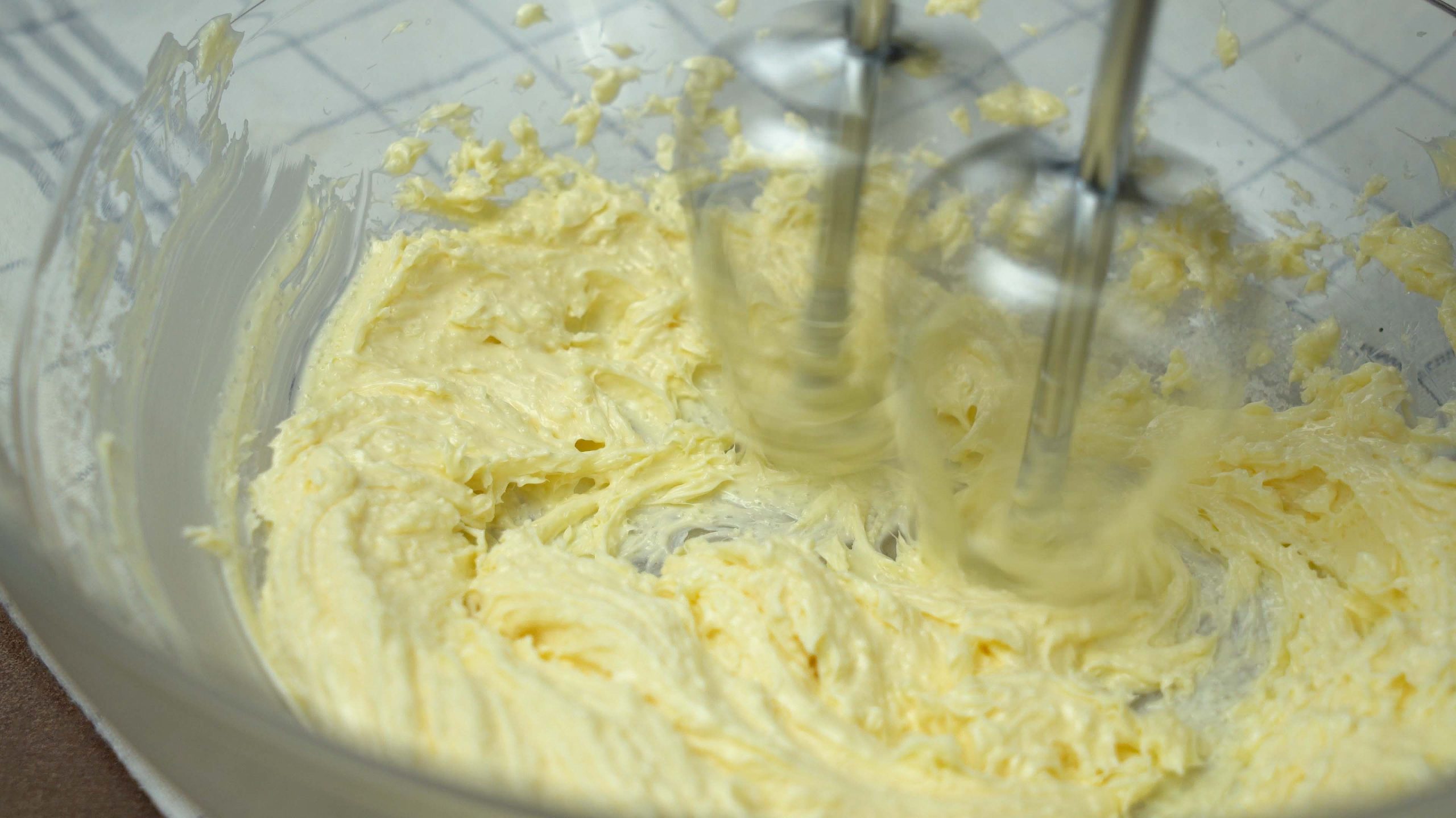 Beat the softened unsalted butter with the sugar until pale and fluffy