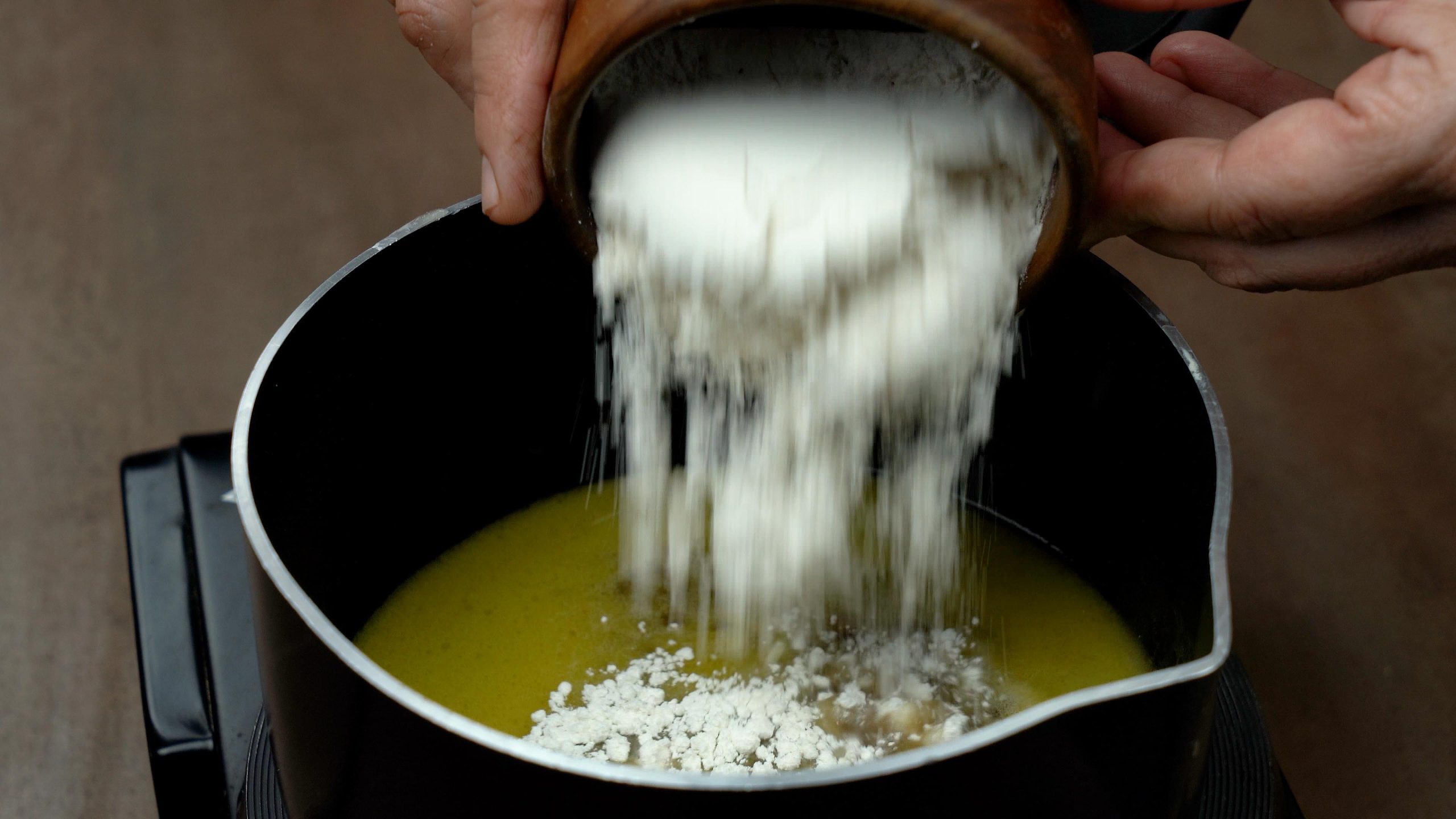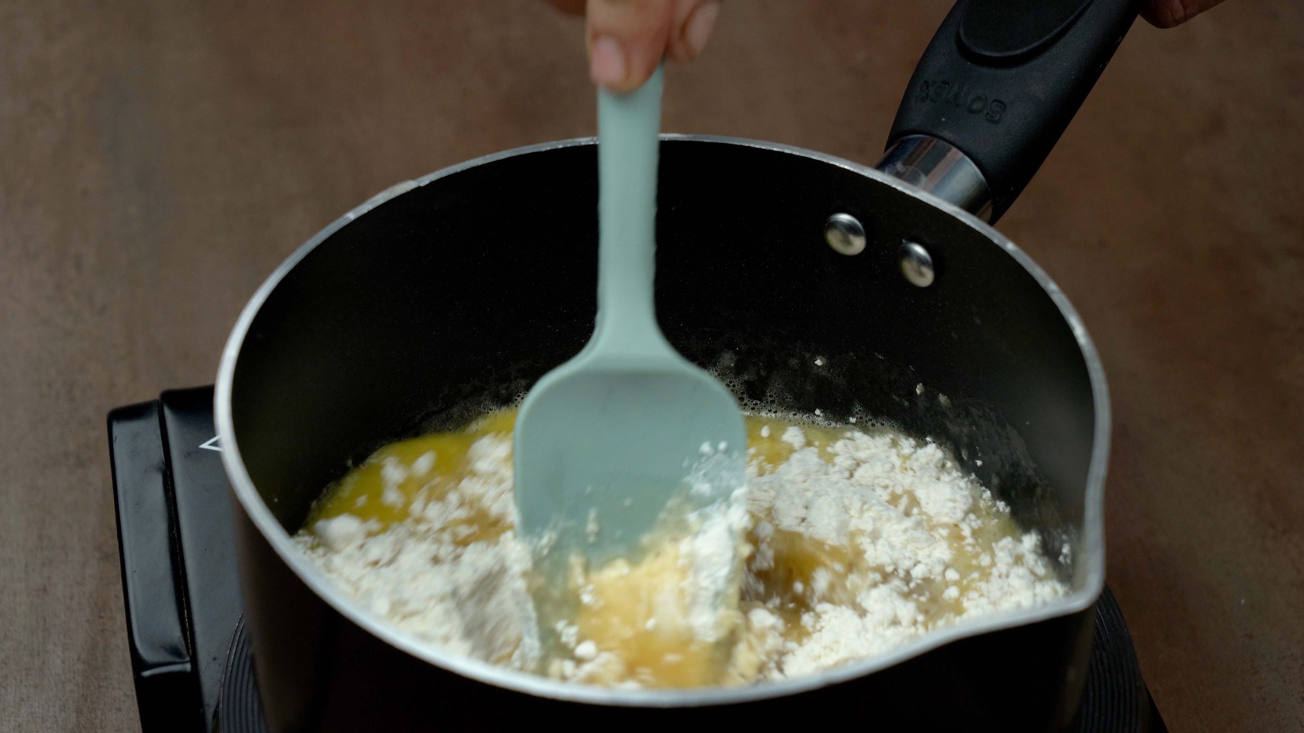 Remove from heat, add all the flour at once, and stir quickly until combined.