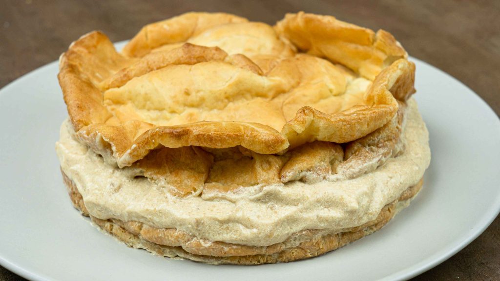 This dessert is among the very few desserts that can actually win over the hearts. This creamy cake is all about the crispy, golden choux pastry peaks and the smooth, soft, and silky vanilla cream filling.