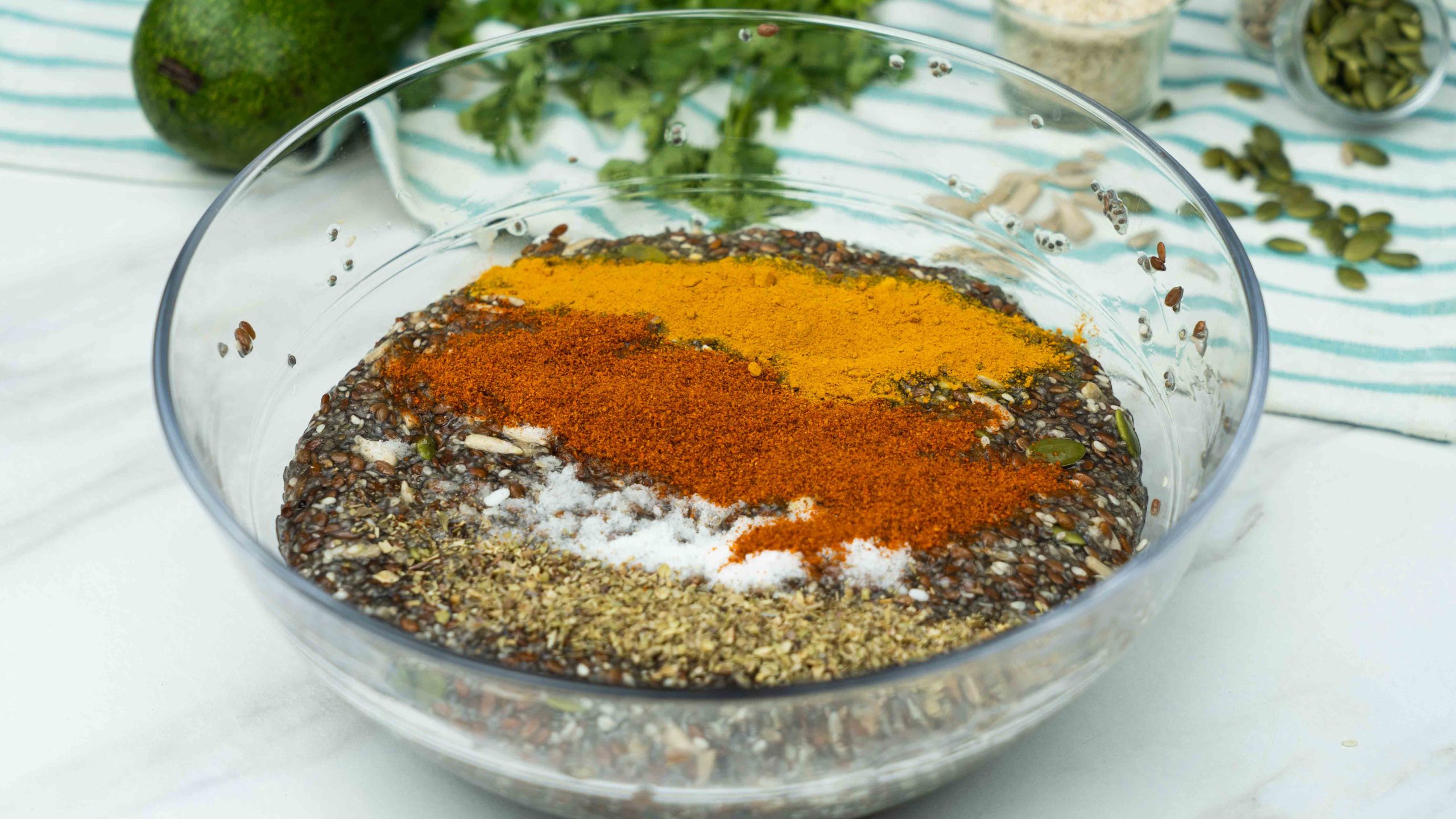 Here are the ingredients you will need to make these delicious Keto Flax & Chia Seed Crackers with Avocado & White Fish. The measurements are given in the recipe card below.