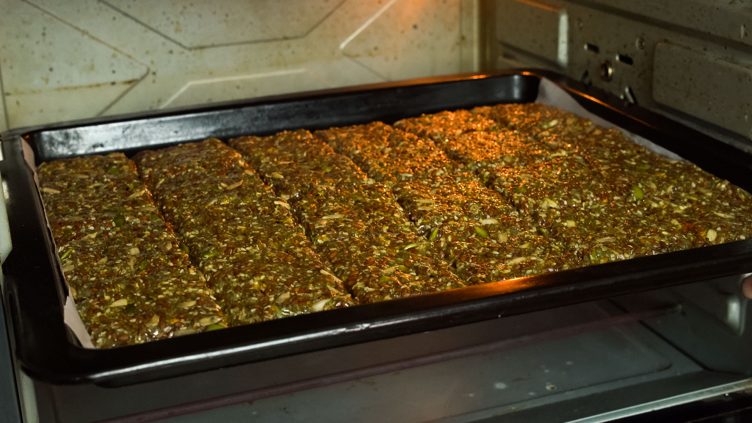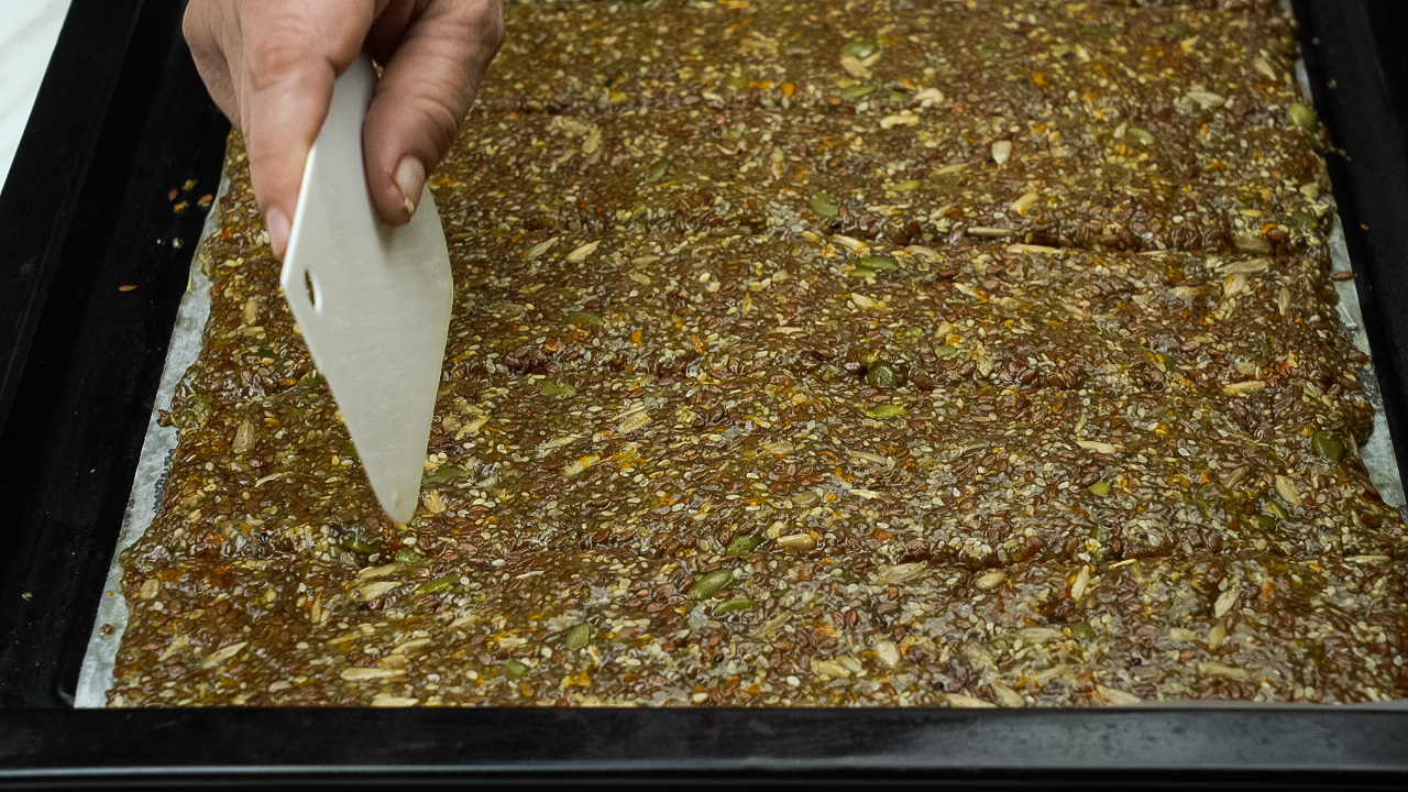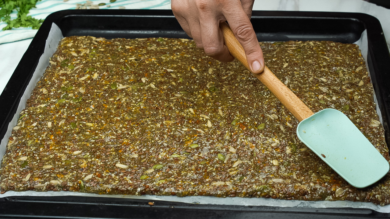 - Make sure the mixture is evenly spread to get uniform cracker thickness.