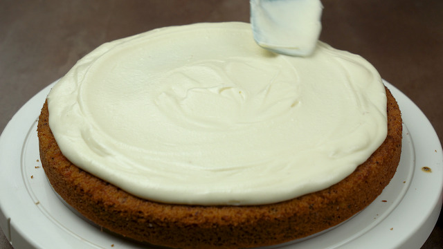 Spread a generous layer of cream cheese frosting on top.