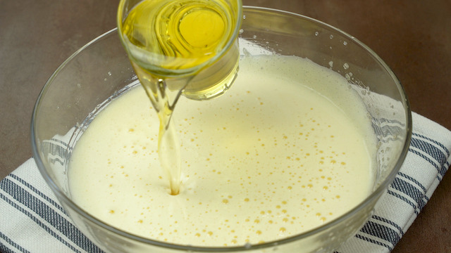 Mix in vegetable oil and vanilla extract.