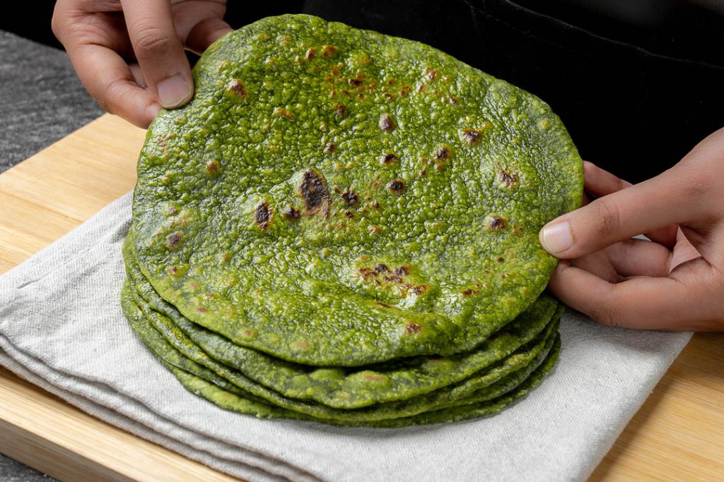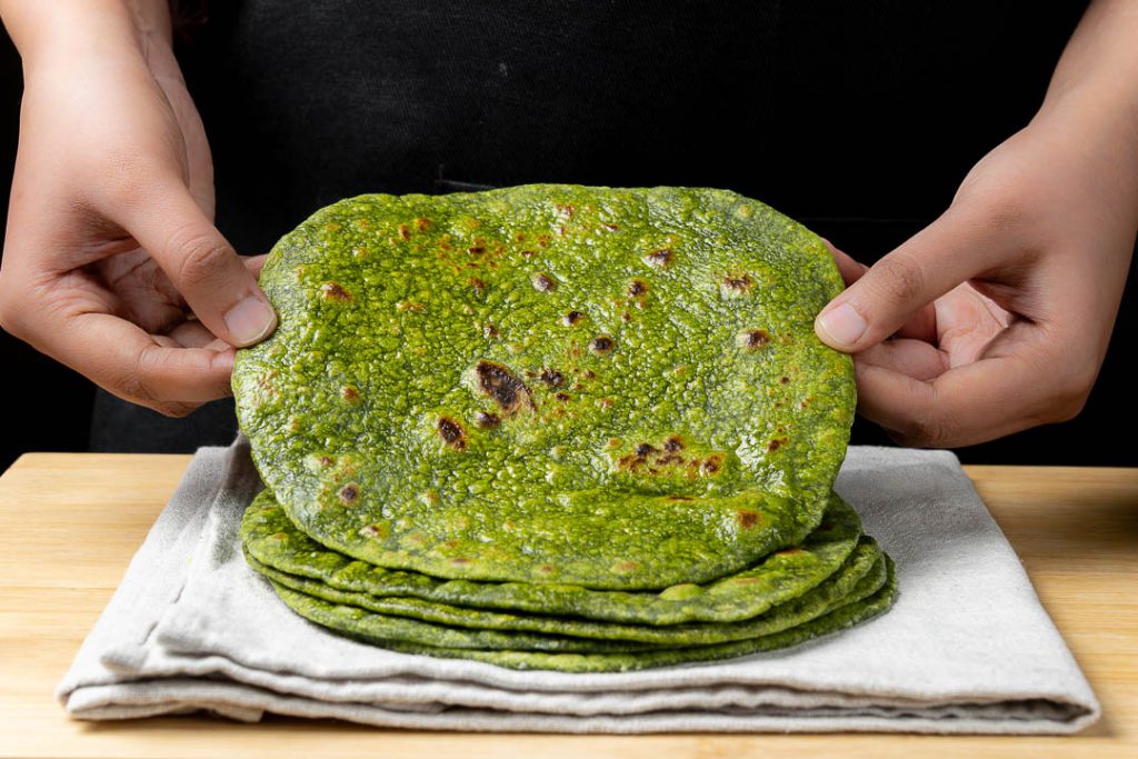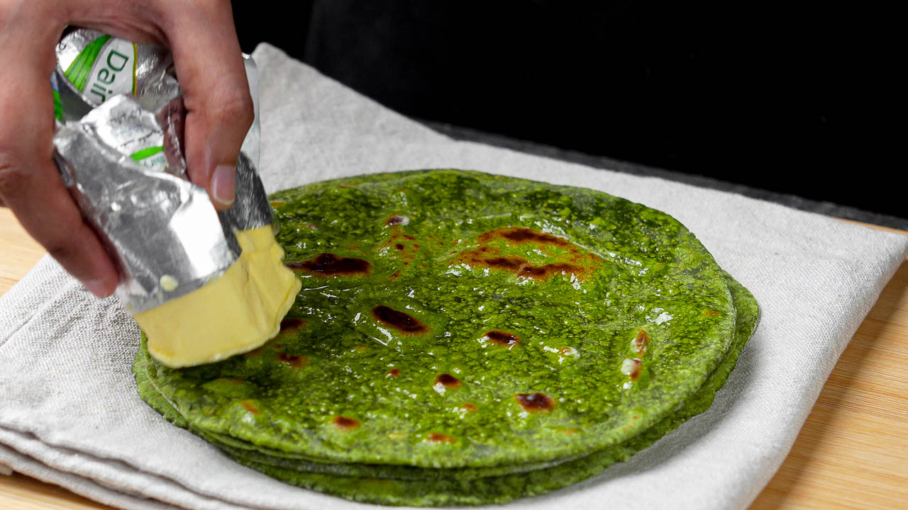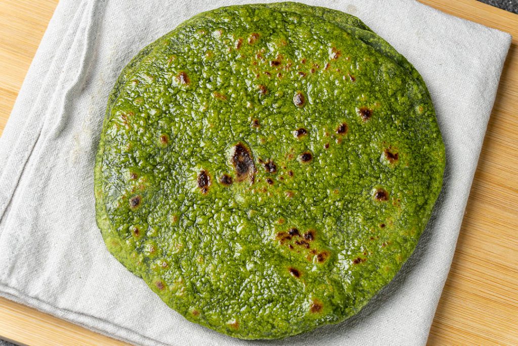The combination of spinach and cilantro is what gives these flatbreads an attractive green color, soft texture, and rich, savory taste. The best part about this recipe is that it needs minimal time in the kitchen and can be cooked over the stovetop in a pan.