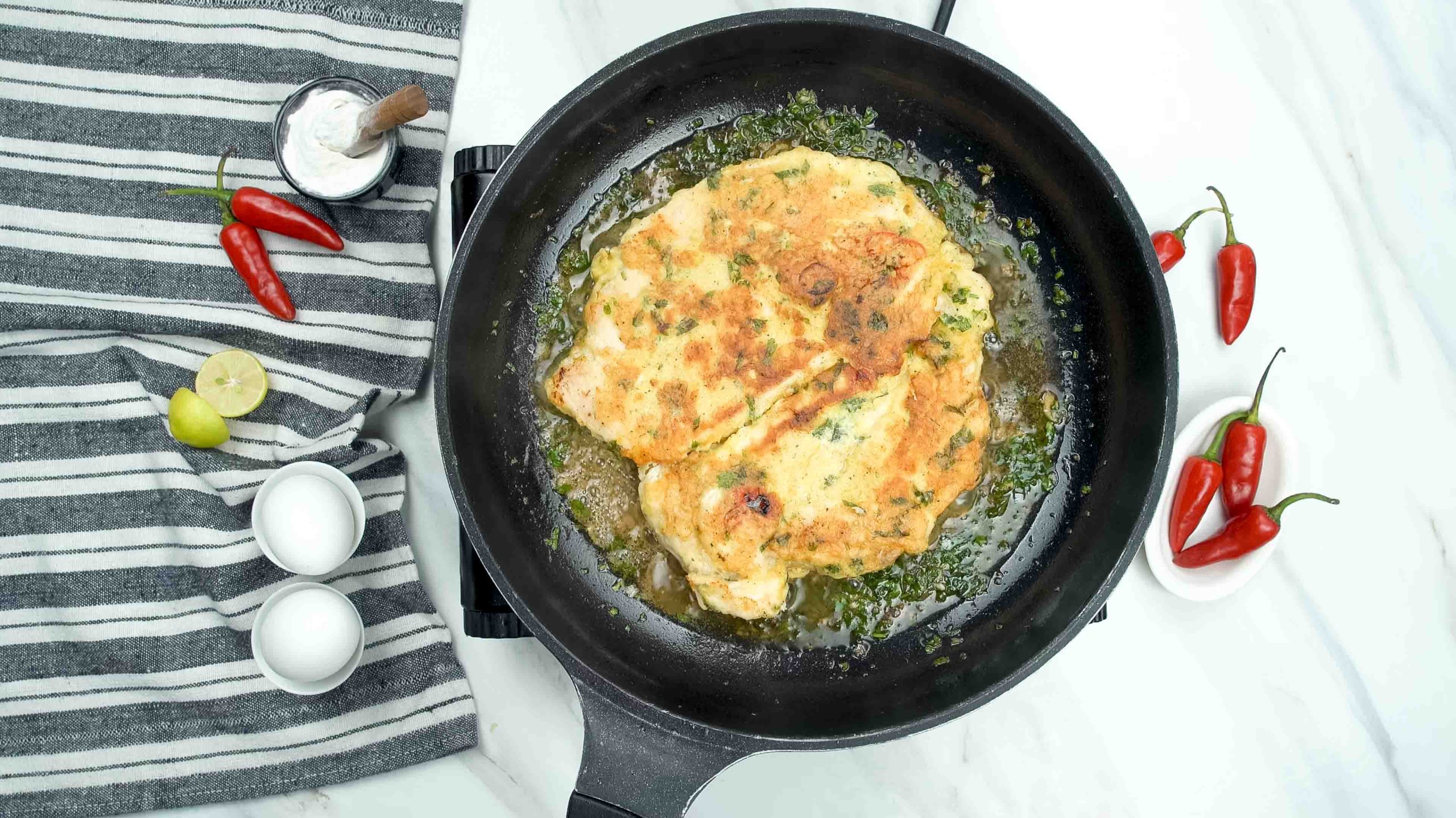 - Salt and Pepper: Of course, you must season the egg mixture to avoid bland-tasting chicken.