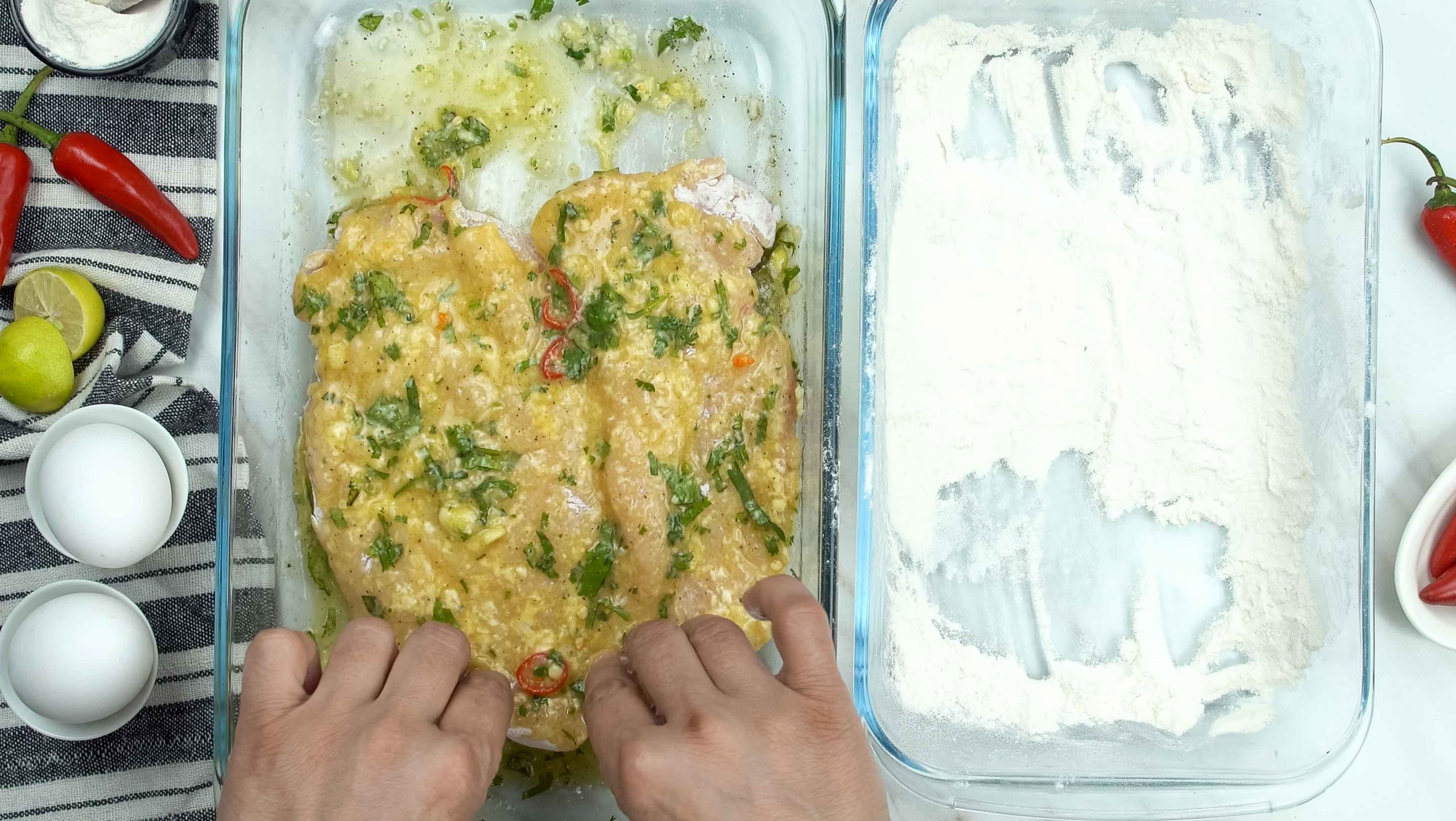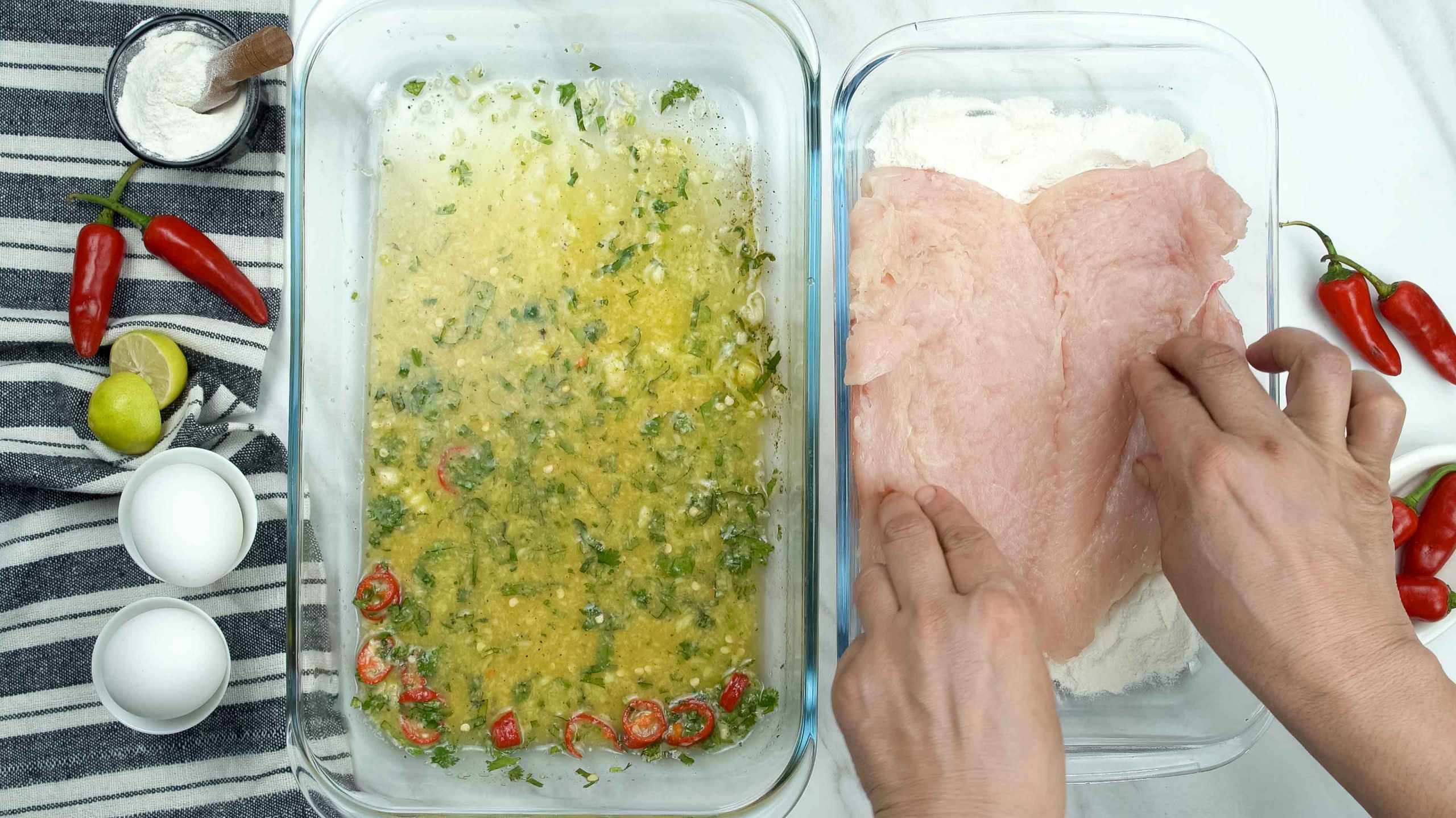 - All-purpose Flour: Flour will help in giving the chicken fillet a crispy crust.