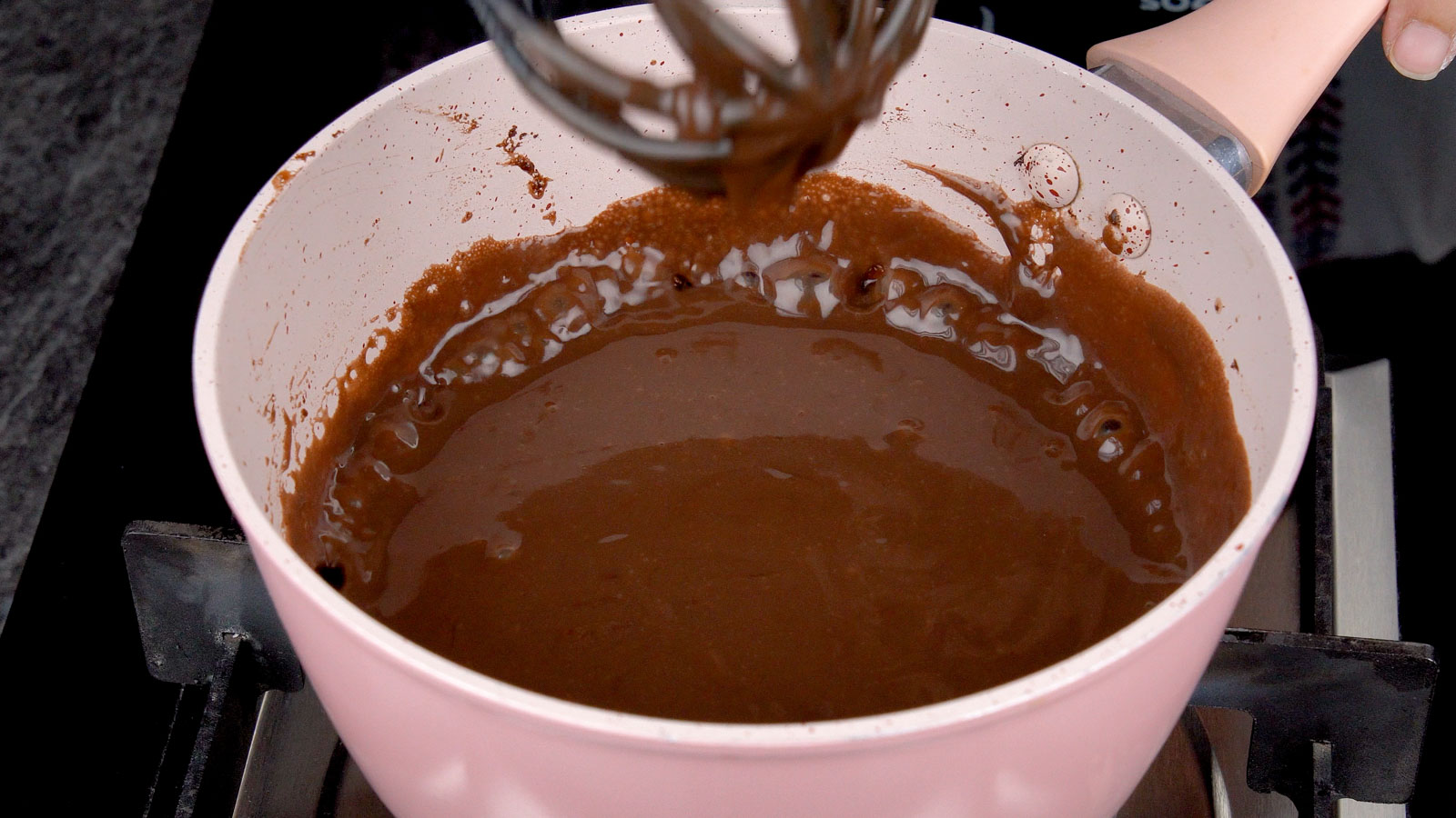 Slowly whisk the slurry into the chocolate mixture and cook on low, stirring constantly until it thickens slightly (about 1 minute).