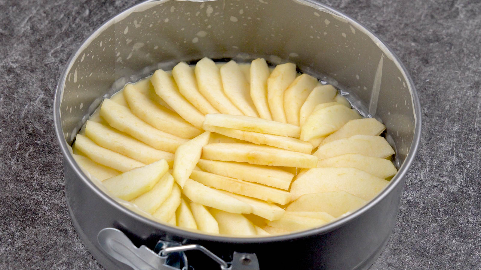 Arrange them evenly over the batter layer. Sweet-tart apples work best because they balance the sweetness of the cake. This apple layer gives the cake its signature soft, melt-in-your-mouth texture.